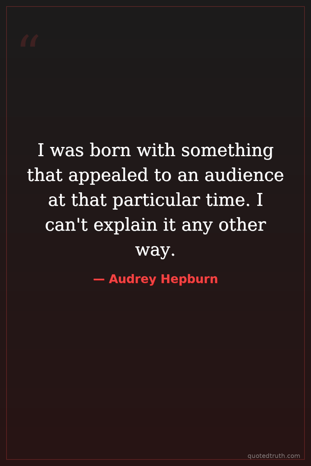 I was born with something that appealed to an audience at that particular time. I can't explain it any other way.
