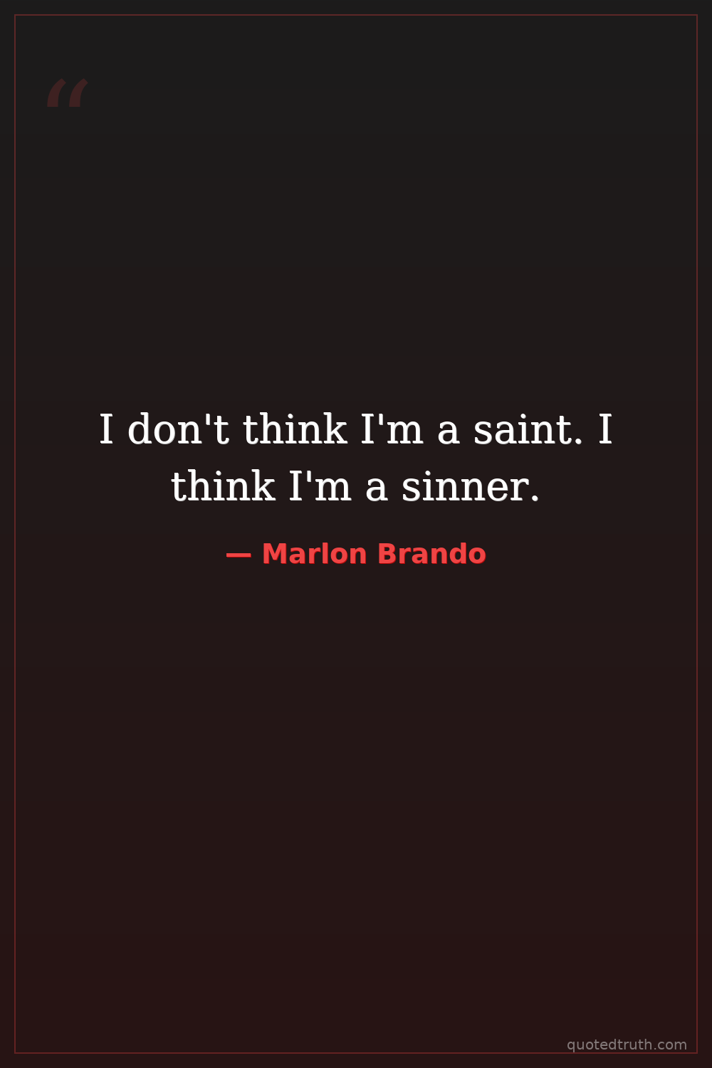 I don't think I'm a saint. I think I'm a sinner.