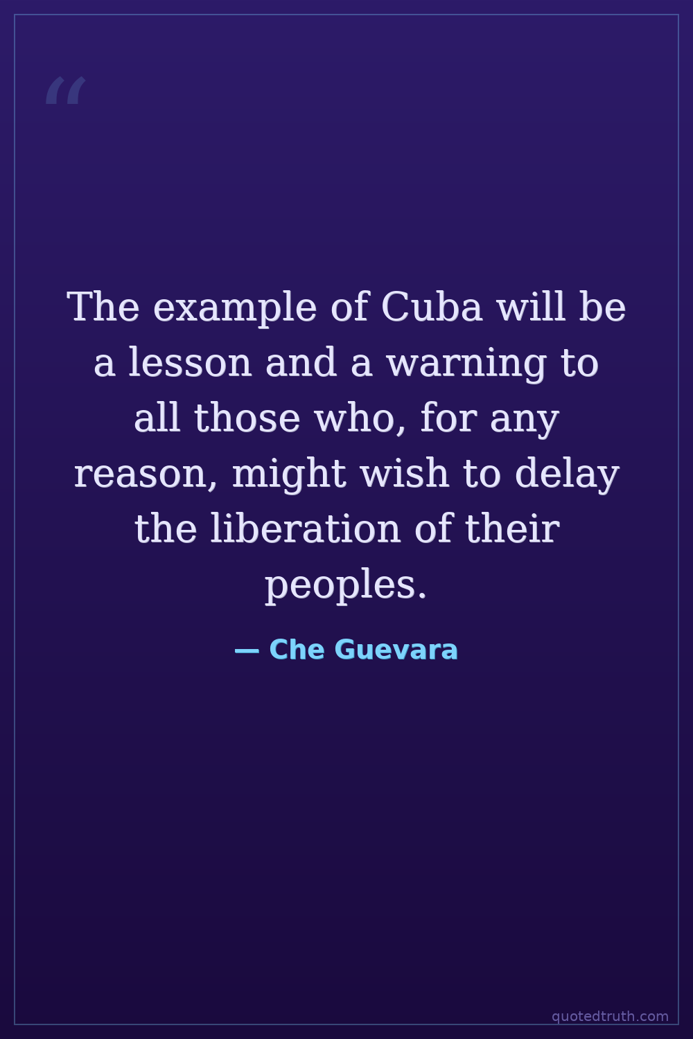 The example of Cuba will be a lesson and a warning to all those who, for any reason, might wish to delay the liberation of their peoples.