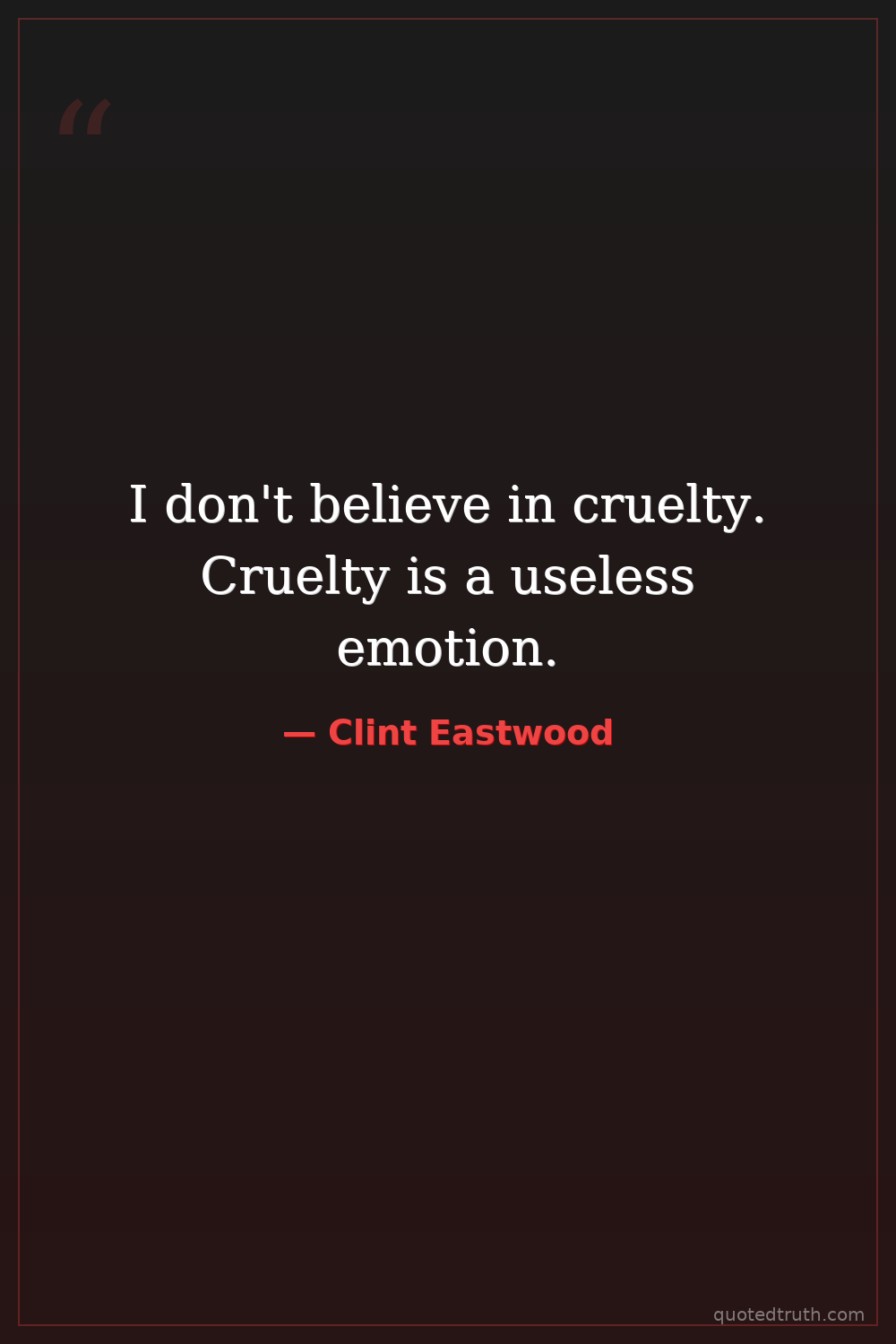 I don't believe in cruelty. Cruelty is a useless emotion.