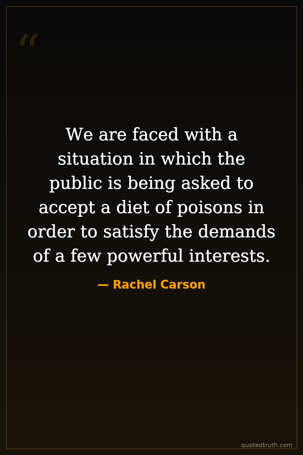 We are faced with a situation in which the public is being asked to accept a diet of poisons in order to satisfy the demands of a few powerful interests.