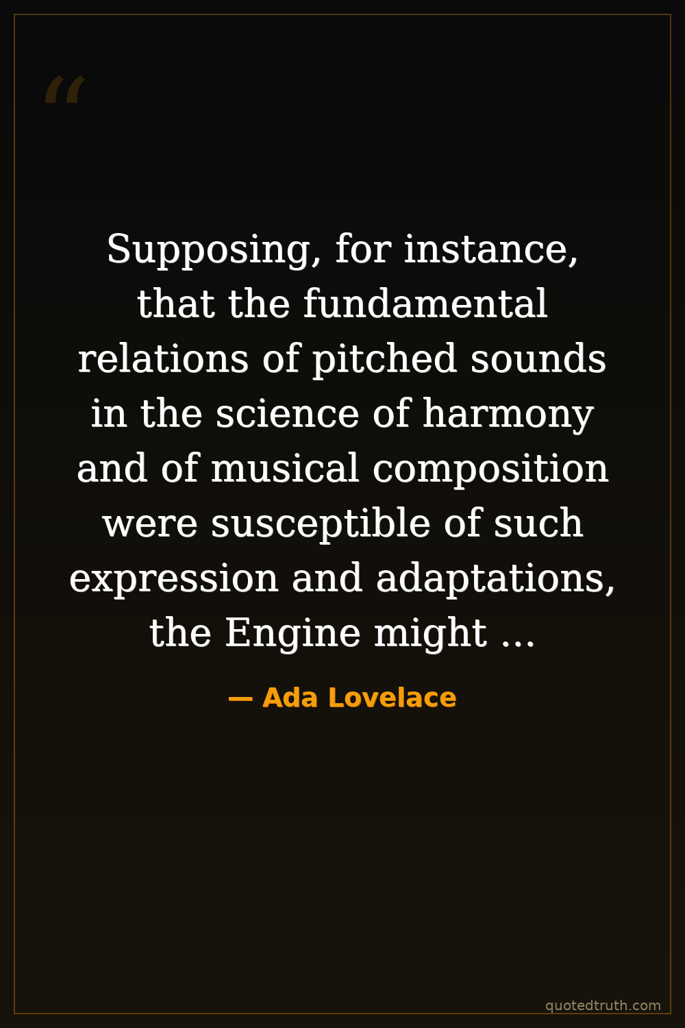 Supposing, for instance, that the fundamental relations of pitched sounds in the science of harmony and of musical composition were susceptible of such expression and adaptations, the Engine might compose elaborate and scientific pieces of music of any degree of complexity or extent.