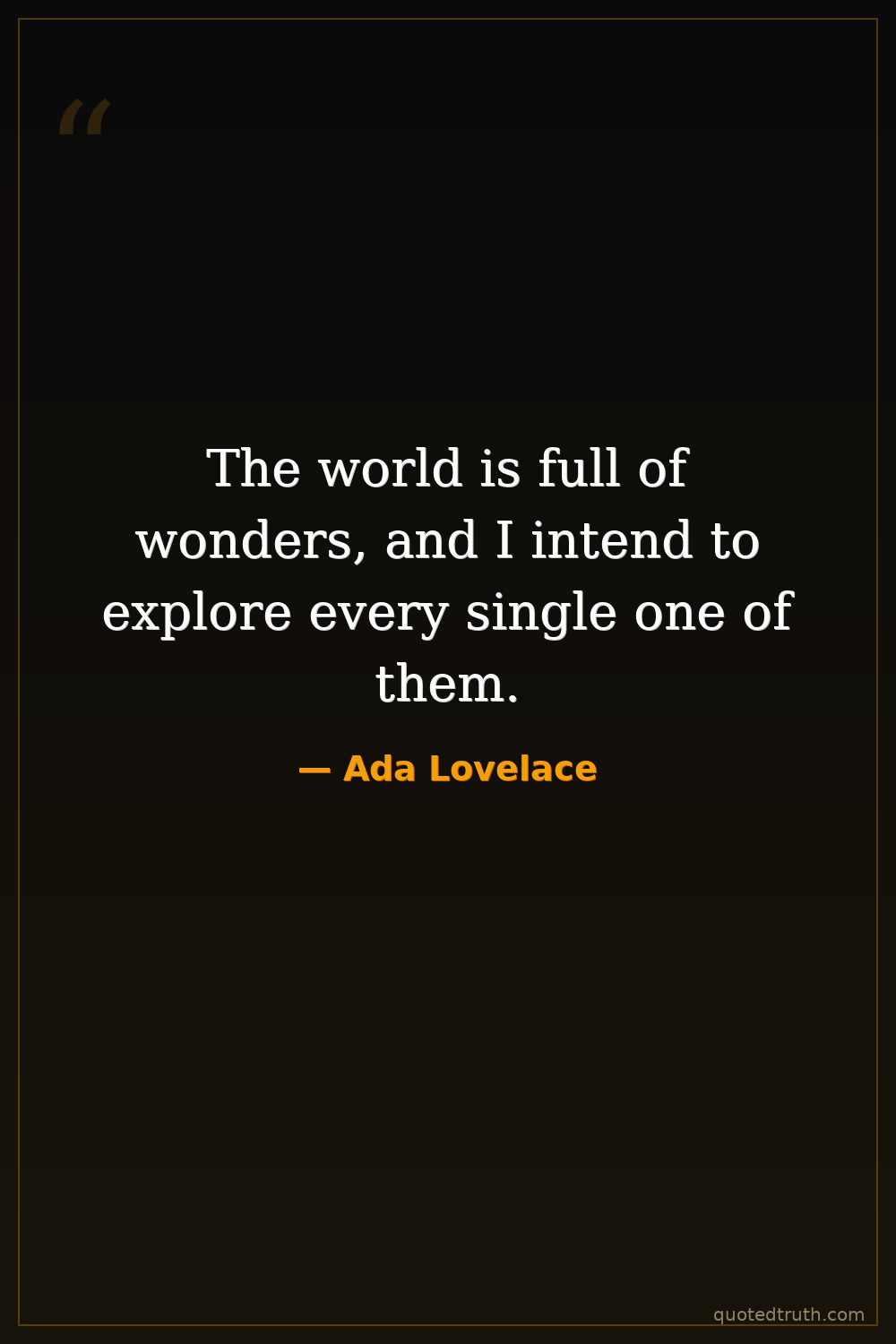 The world is full of wonders, and I intend to explore every single one of them.