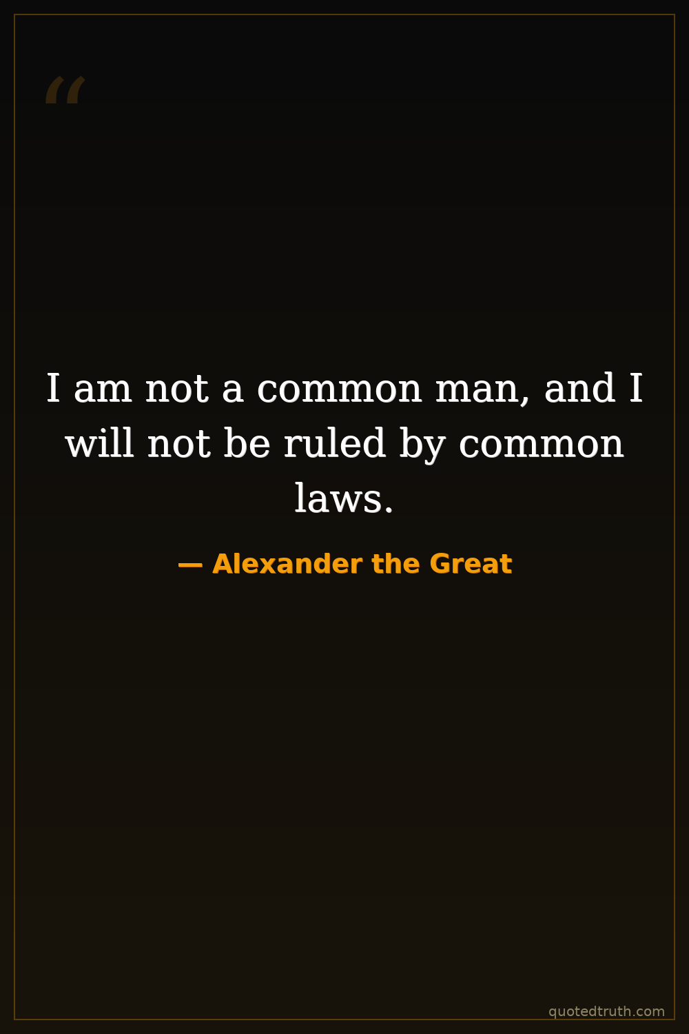I am not a common man, and I will not be ruled by common laws.