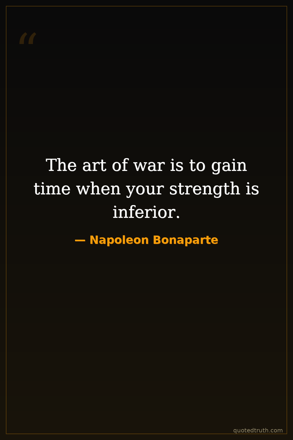 The art of war is to gain time when your strength is inferior.