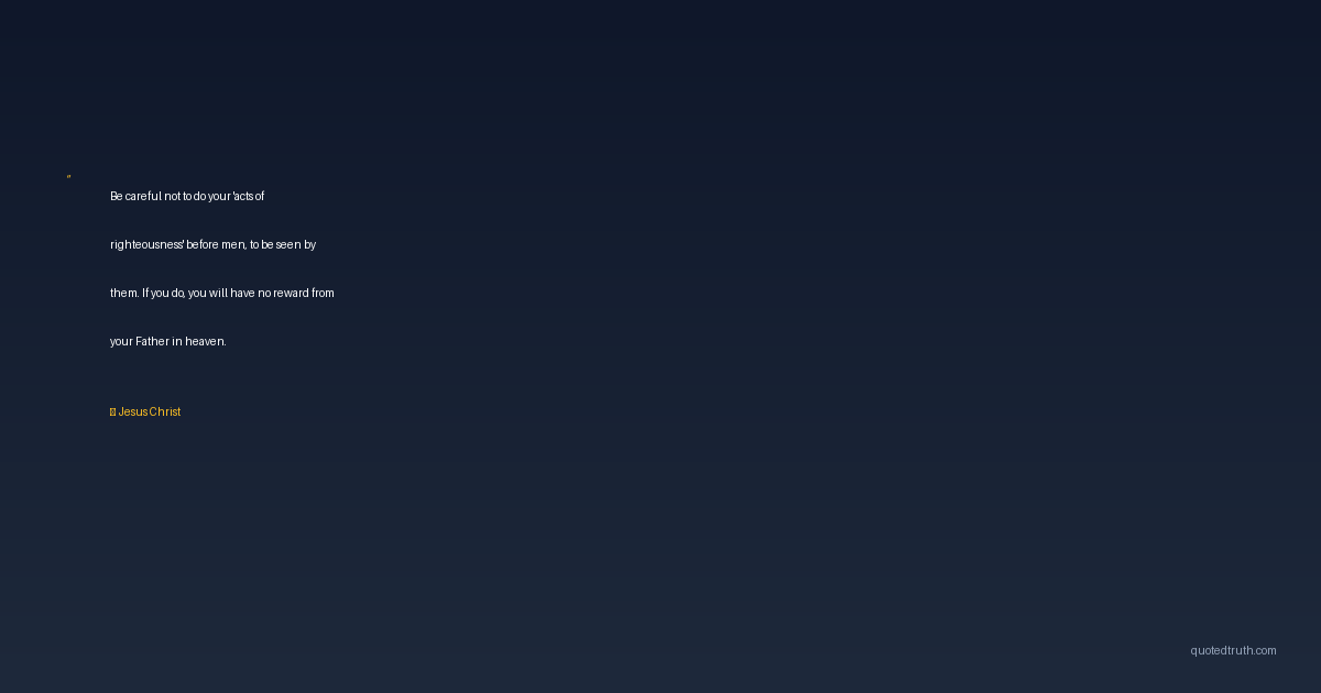 Be careful not to do your 'acts of righteousness' before men, to be seen by them. If you do, you will have no reward from your Father in heaven.