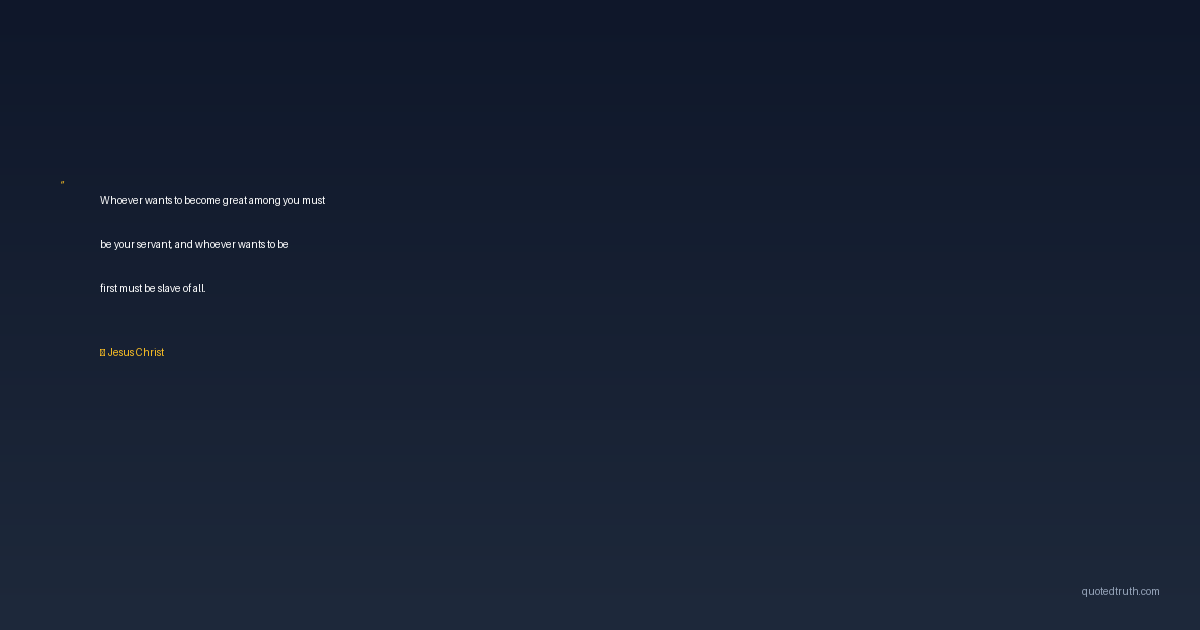 Whoever wants to become great among you must be your servant, and whoever wants to be first must be slave of all.