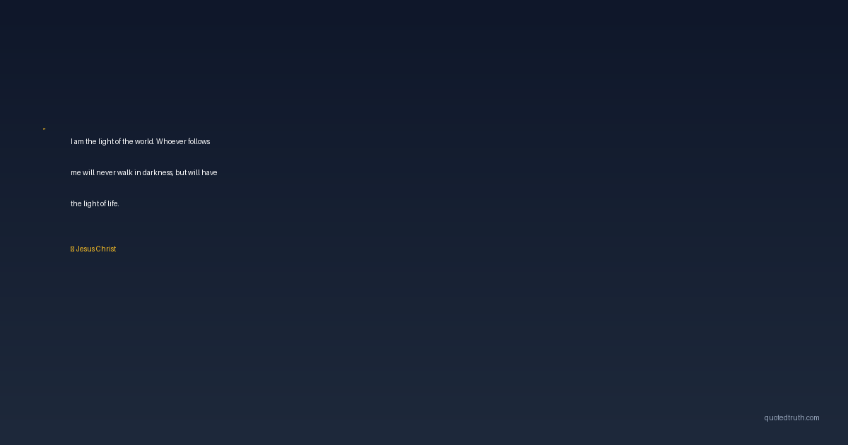 I am the light of the world. Whoever follows me will never walk in darkness, but will have the light of life.