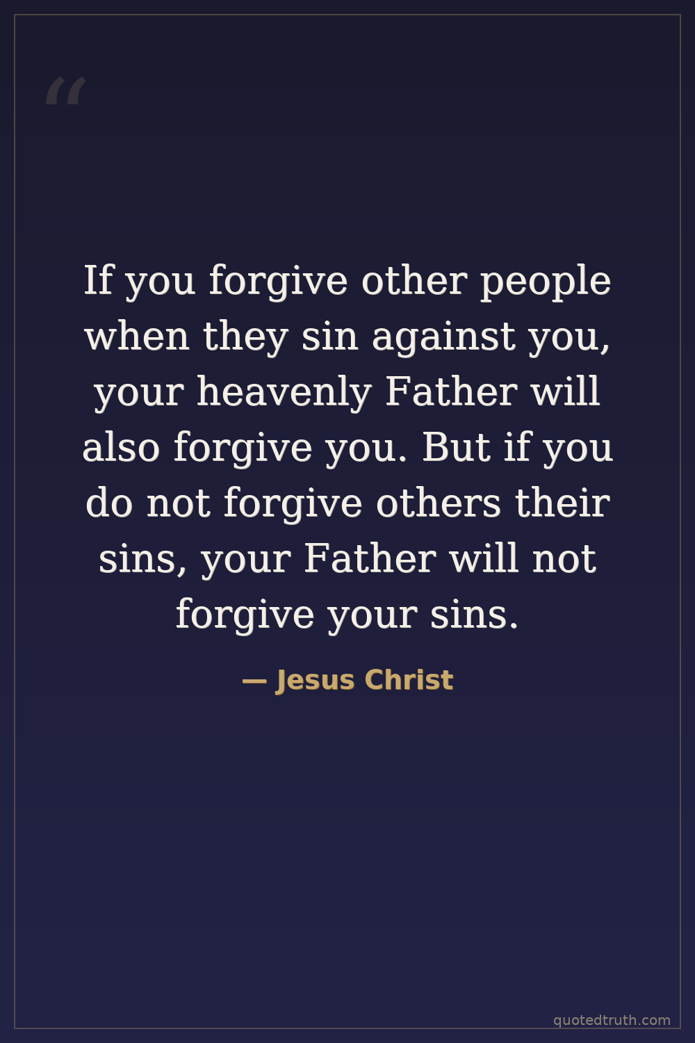 If you forgive other people when they sin against you, your heavenly Father will also forgive you. But if you do not forgive others their sins, your Father will not forgive your sins.