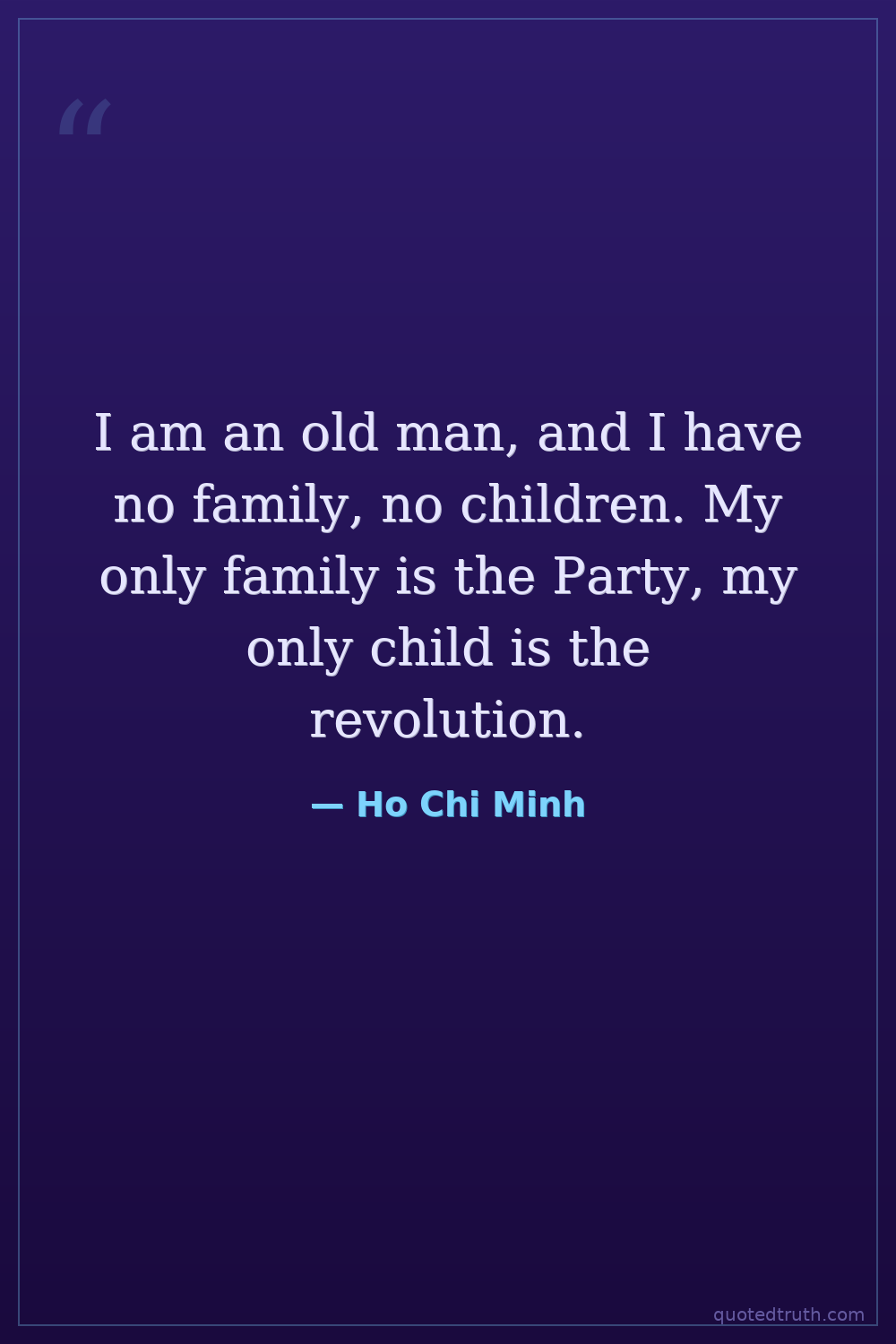 I am an old man, and I have no family, no children. My only family is the Party, my only child is the revolution.