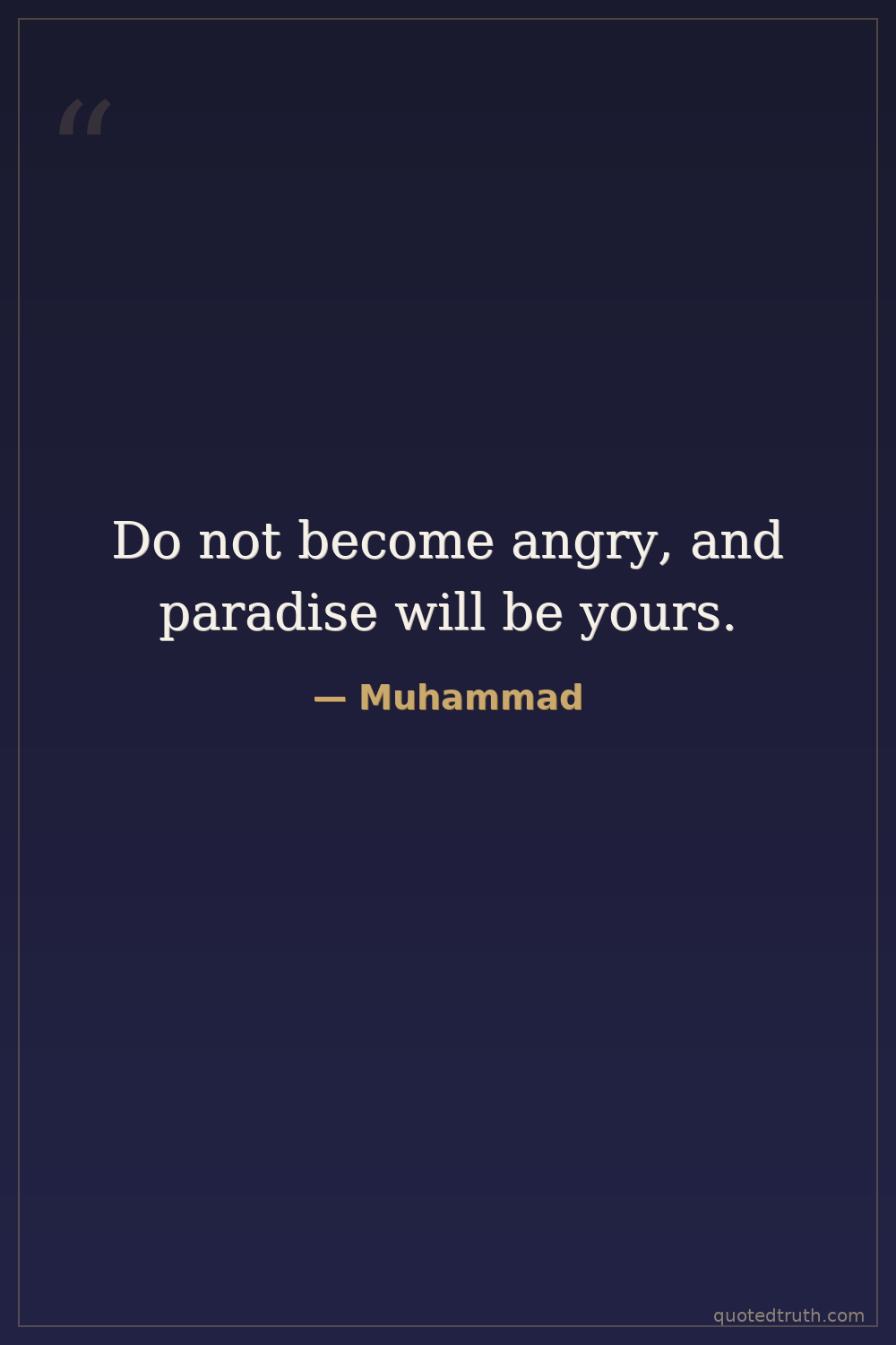 Do not become angry, and paradise will be yours.