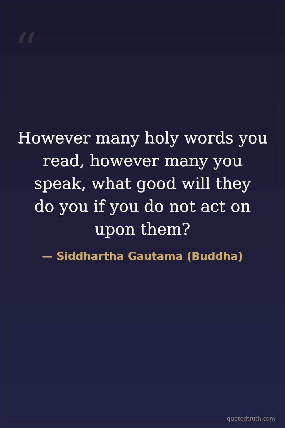 However many holy words you read, however many you speak, what good will they do you if you do not act on upon them?