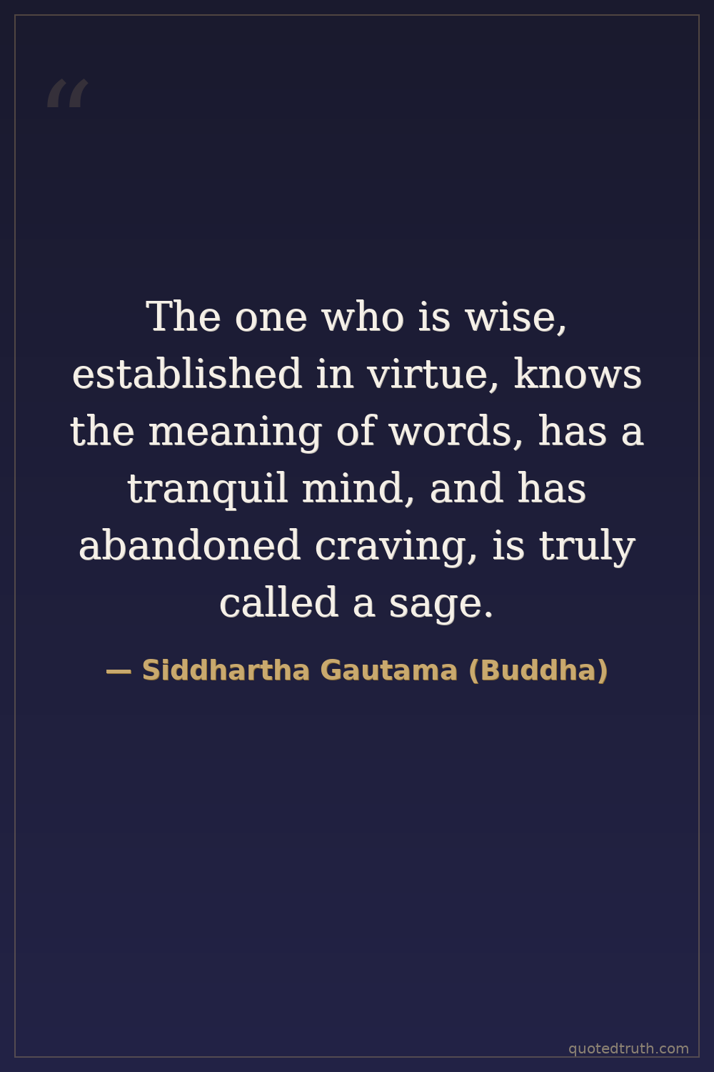 The one who is wise, established in virtue, knows the meaning of words, has a tranquil mind, and has abandoned craving, is truly called a sage.