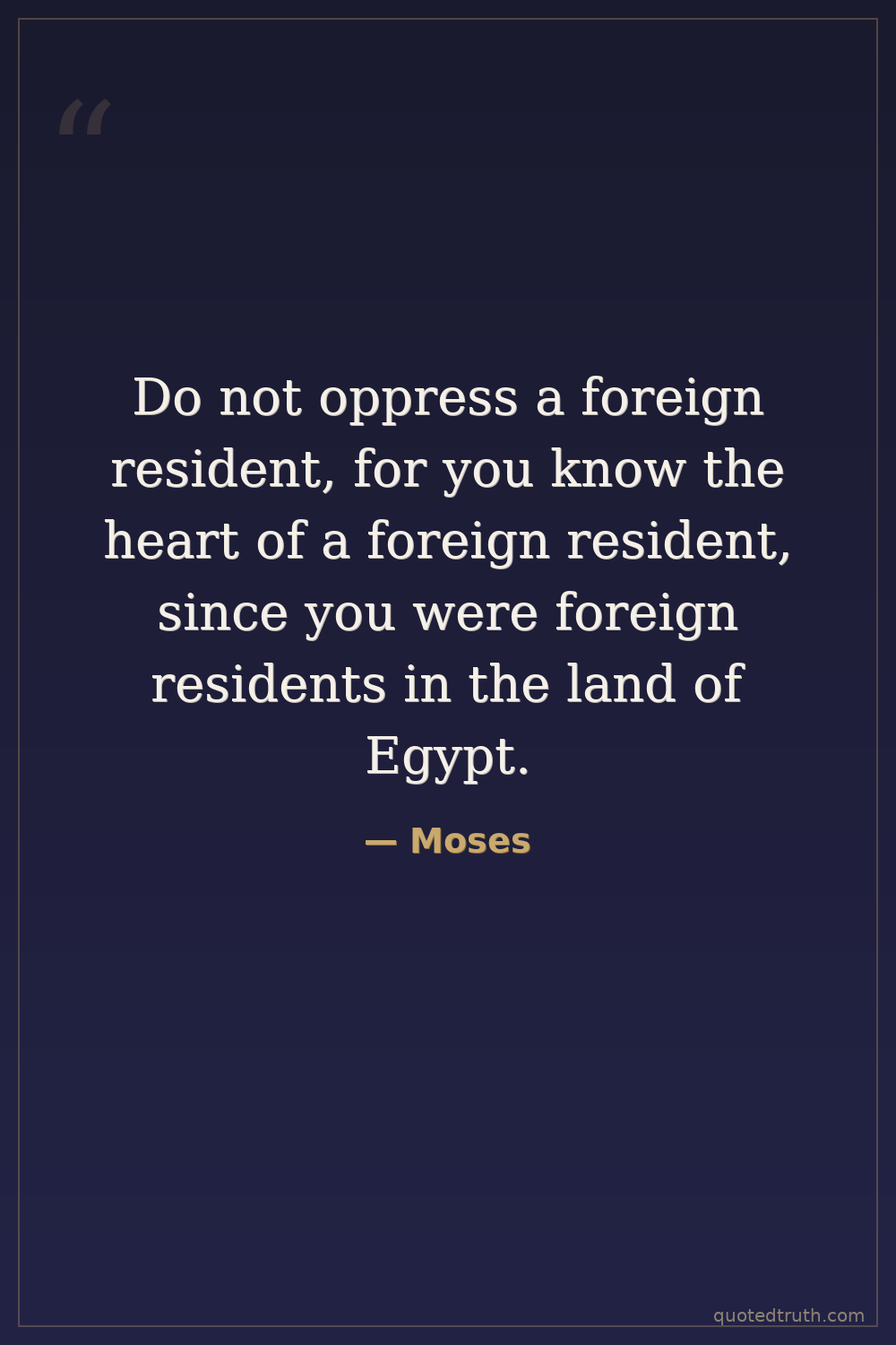 Do not oppress a foreign resident, for you know the heart of a foreign resident, since you were foreign residents in the land of Egypt.