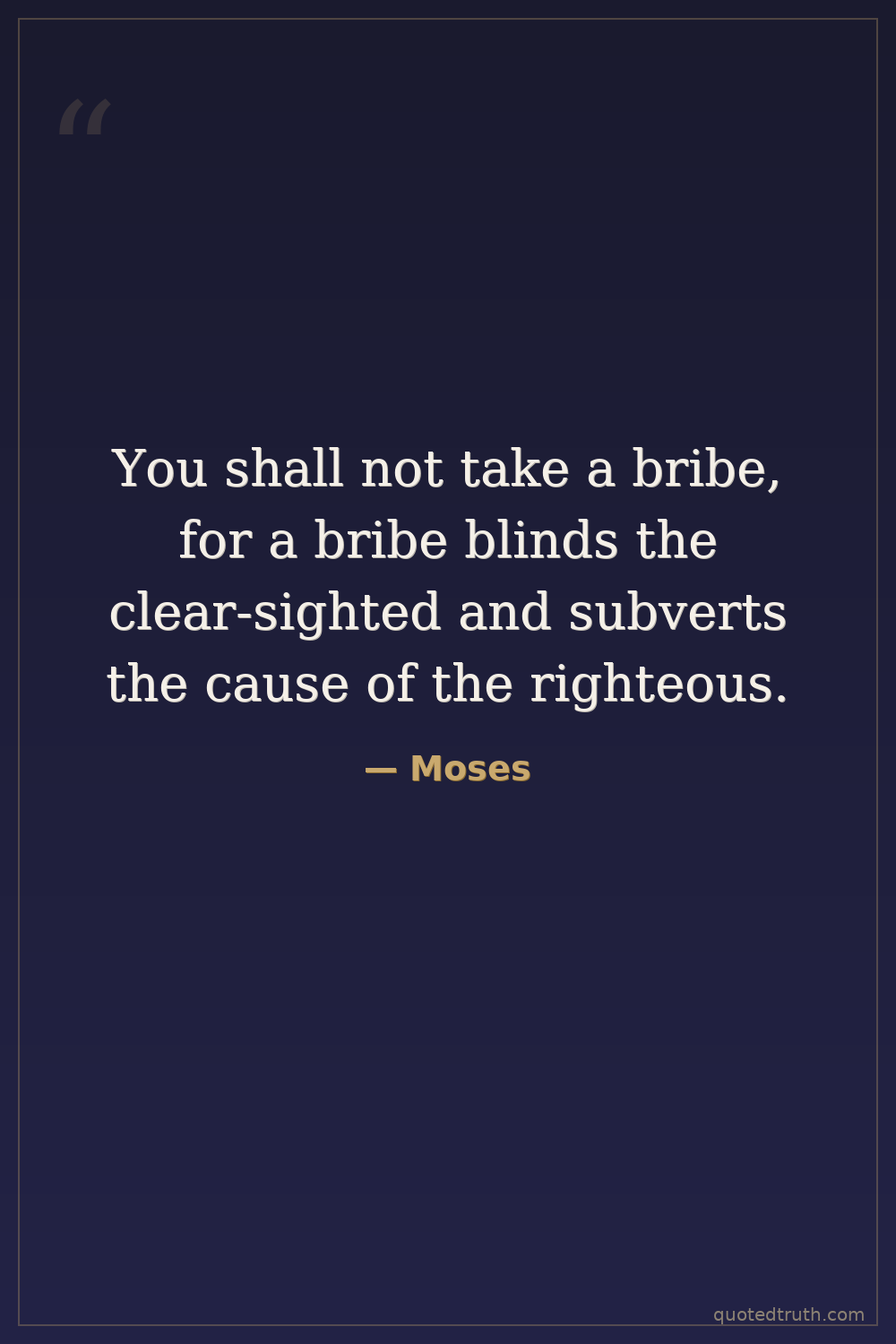 You shall not take a bribe, for a bribe blinds the clear-sighted and subverts the cause of the righteous.