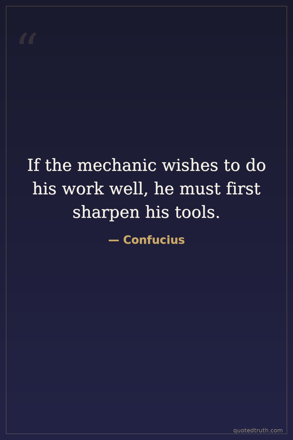 If the mechanic wishes to do his work well, he must first sharpen his tools.