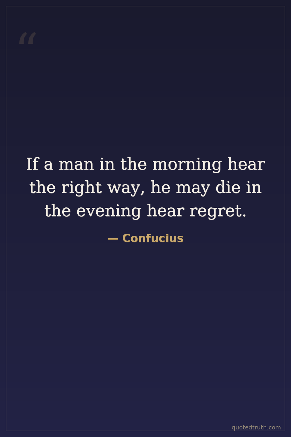 If a man in the morning hear the right way, he may die in the evening hear regret.