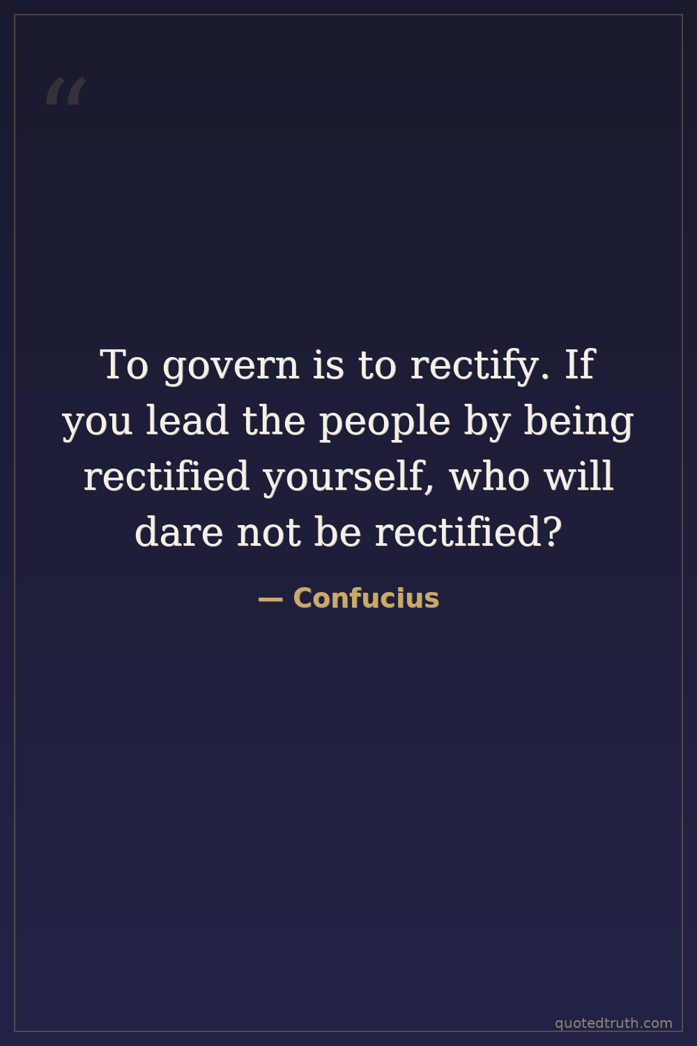 To govern is to rectify. If you lead the people by being rectified yourself, who will dare not be rectified?