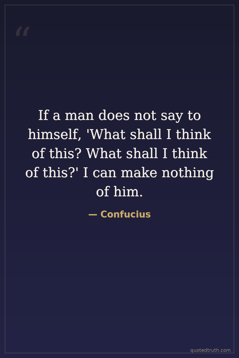 Philosophical"The superior man thinks of virtue; the small man thinks of comfort."
