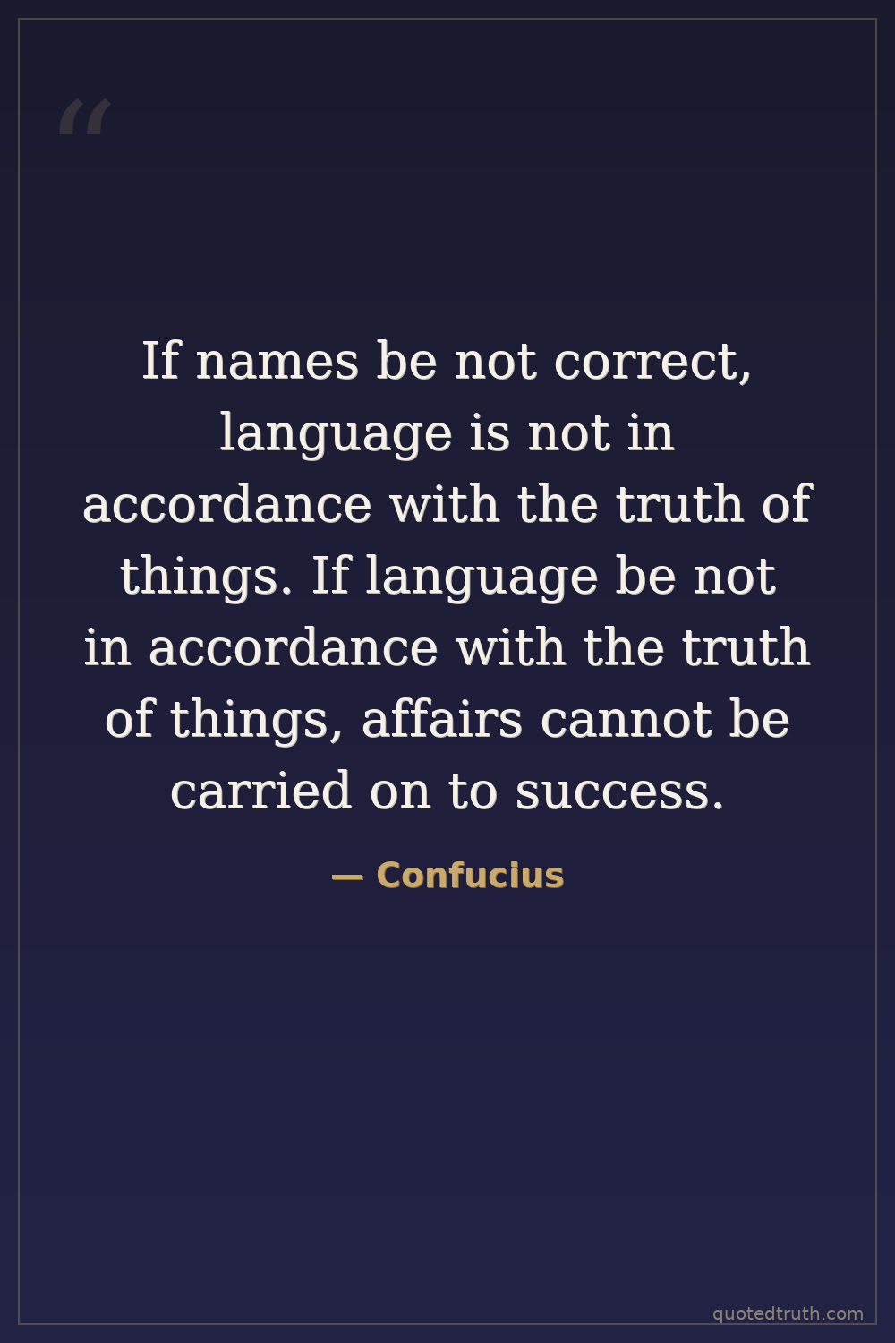 If names be not correct, language is not in accordance with the truth of things. If language be not in accordance with the truth of things, affairs cannot be carried on to success.