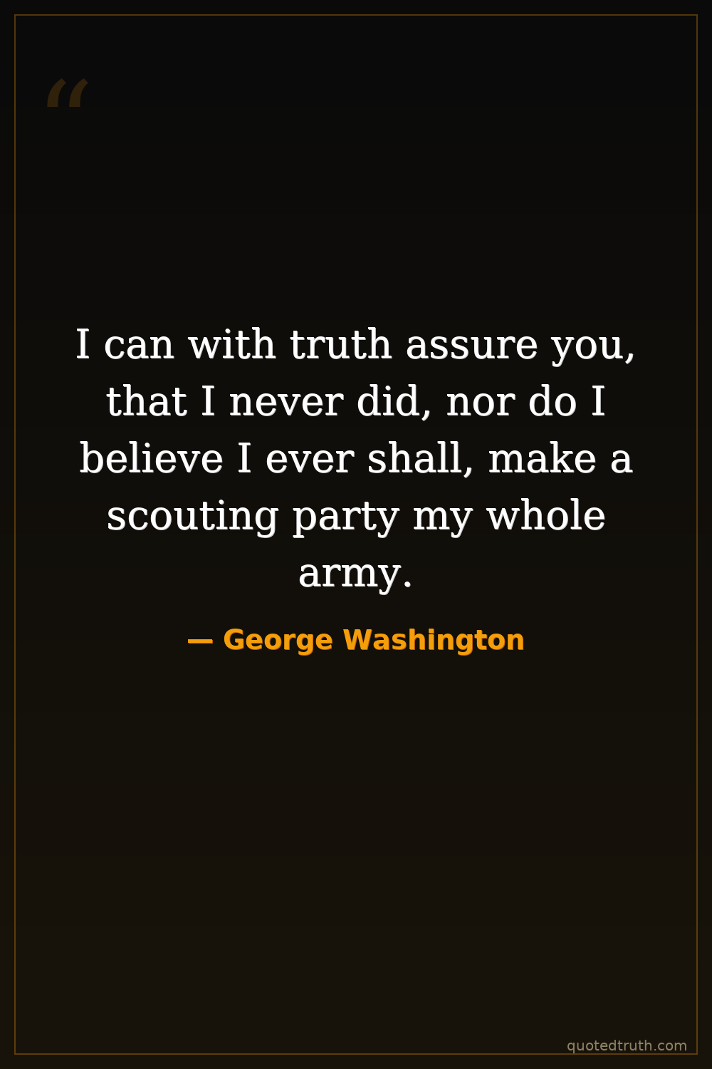 I can with truth assure you, that I never did, nor do I believe I ever shall, make a scouting party my whole army.