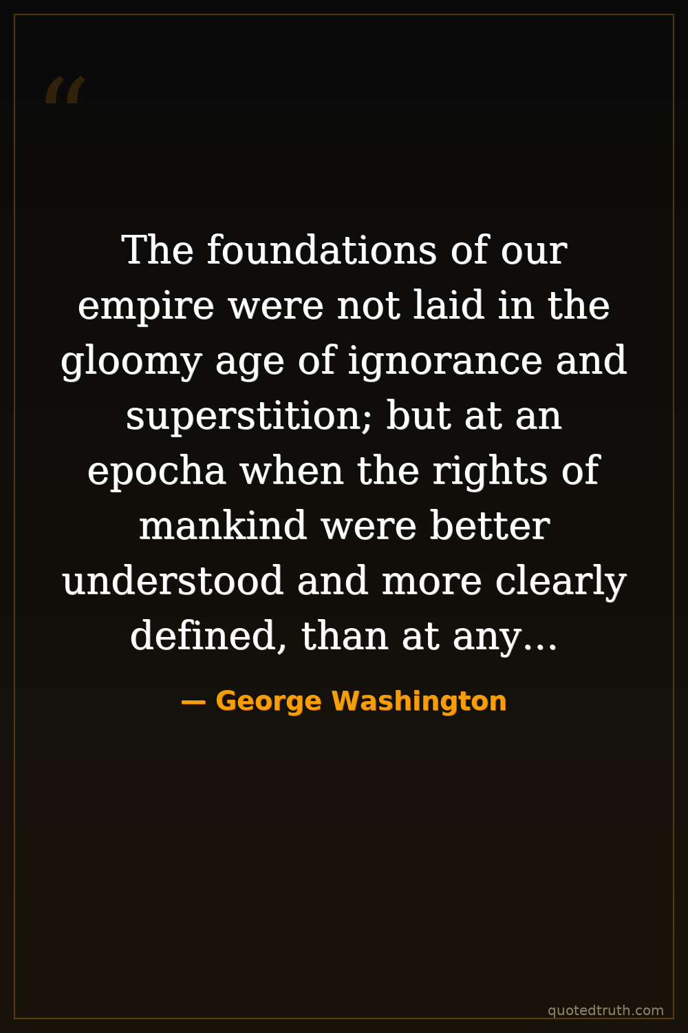 The foundations of our empire were not laid in the gloomy age of ignorance and superstition; but at an epocha when the rights of mankind were better understood and more clearly defined, than at any former period.