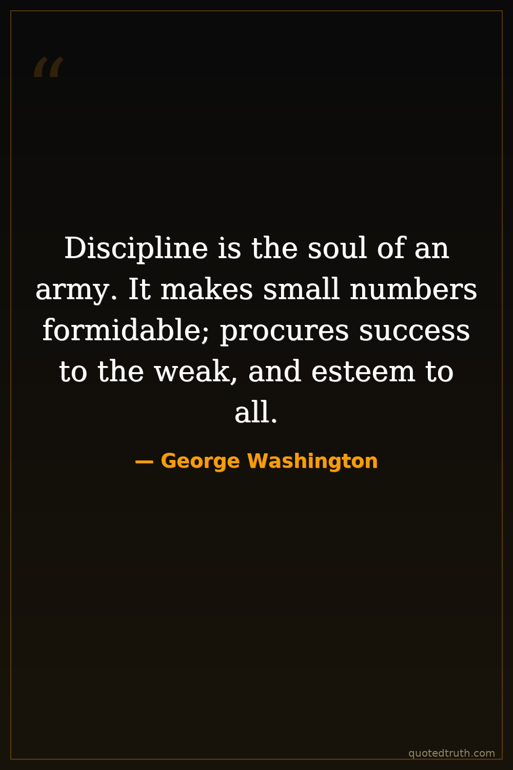 Discipline is the soul of an army. It makes small numbers formidable; procures success to the weak, and esteem to all.