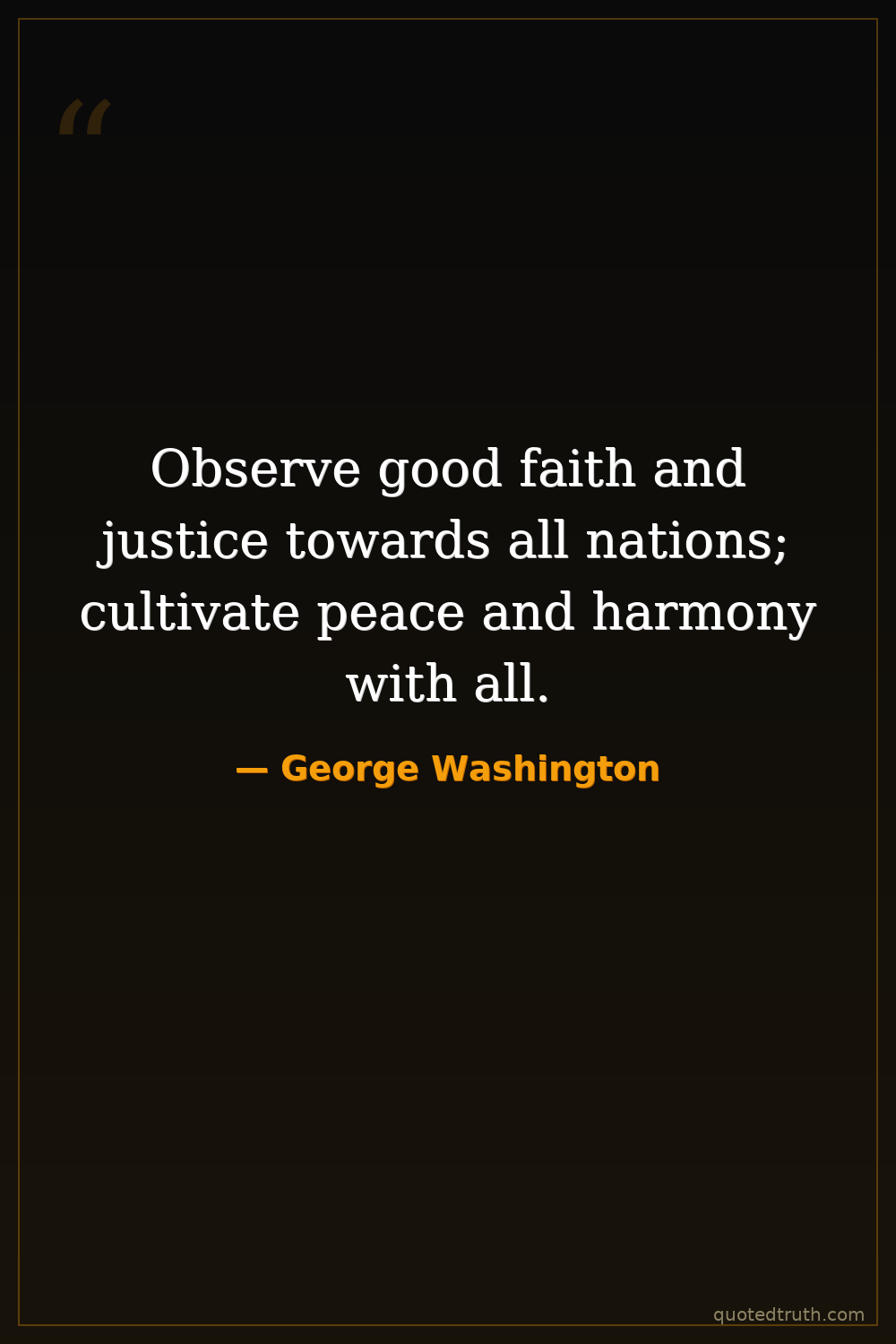 Observe good faith and justice towards all nations; cultivate peace and harmony with all.