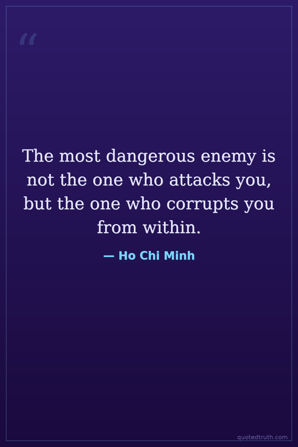 The most dangerous enemy is not the one who attacks you, but the one who corrupts you from within.