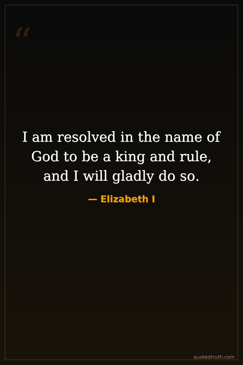 I am resolved in the name of God to be a king and rule, and I will gladly do so.