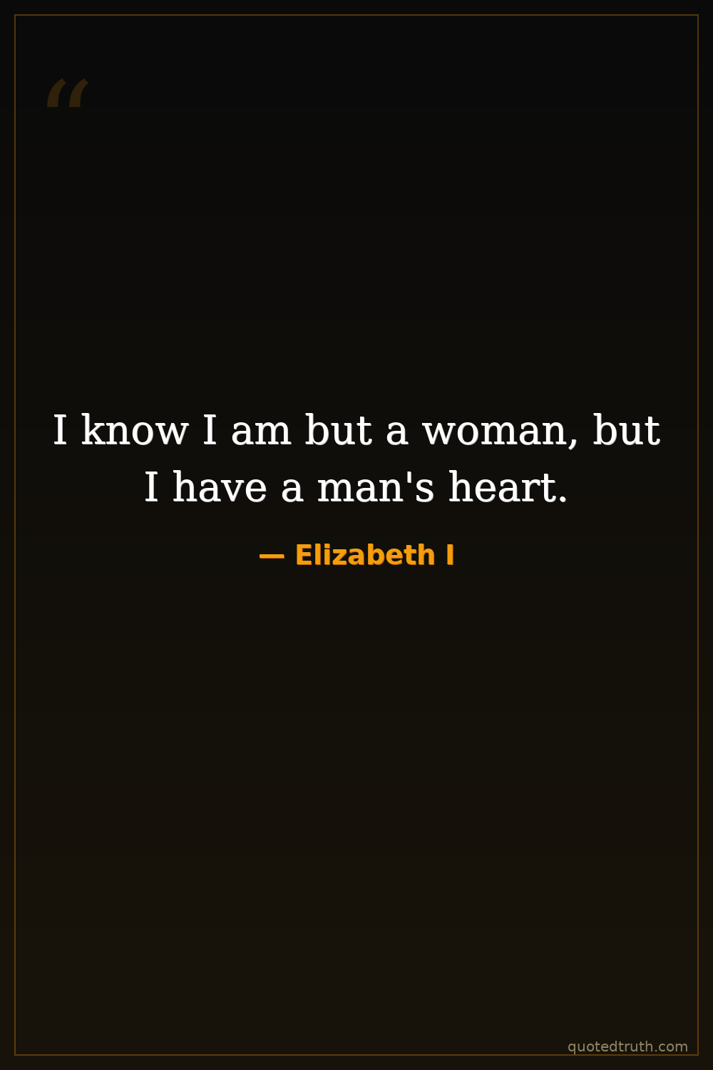 "I know I have the body but of a weak and feeble woman; but I have the heart and stomach of a king, and of a king of England too, and think foul scorn that Parma or Spain, or any prince of Europe, shou…"