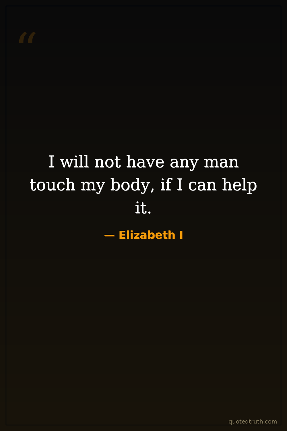 I will not have any man touch my body, if I can help it.