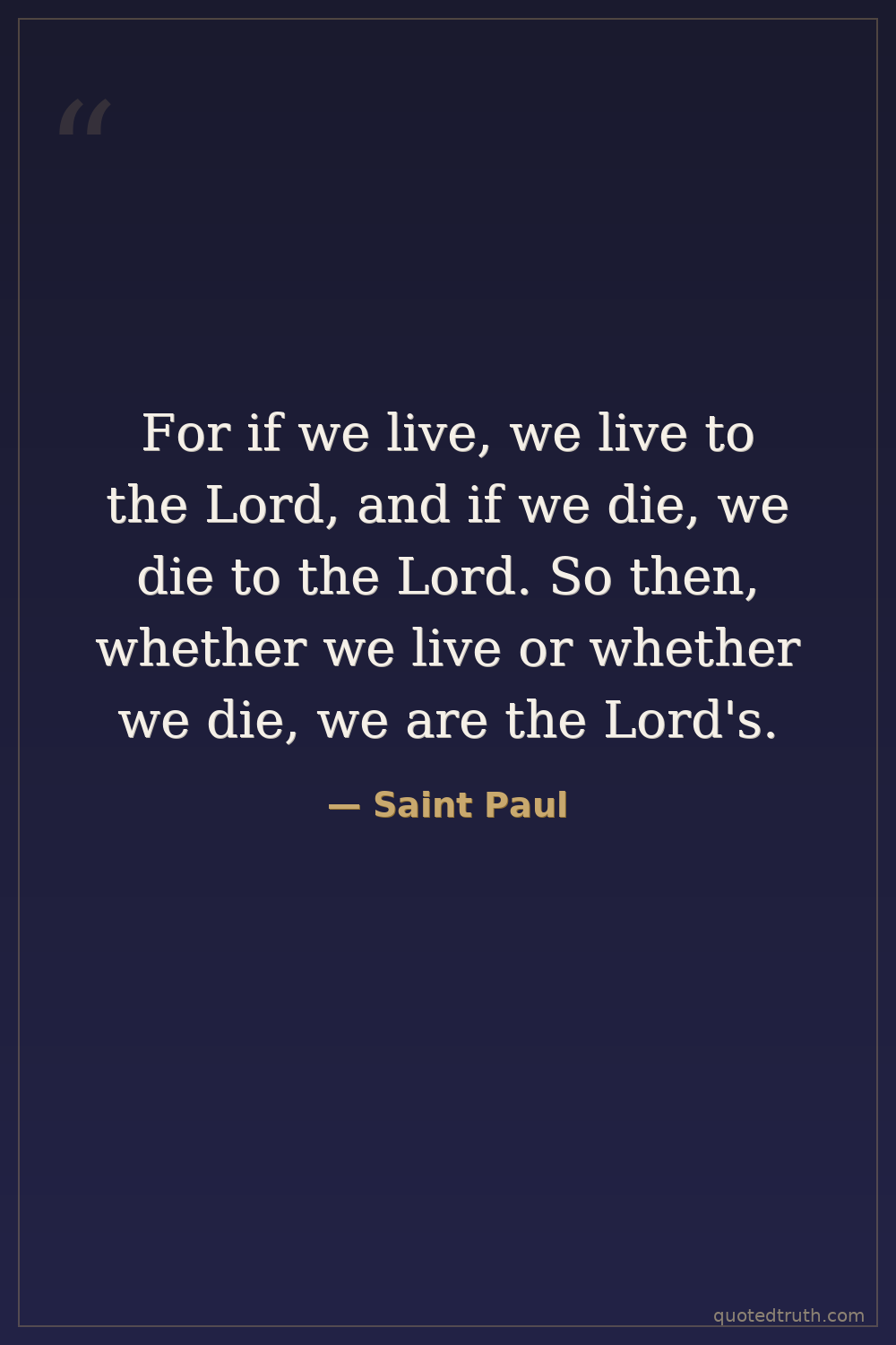 For if we live, we live to the Lord, and if we die, we die to the Lord. So then, whether we live or whether we die, we are the Lord's.