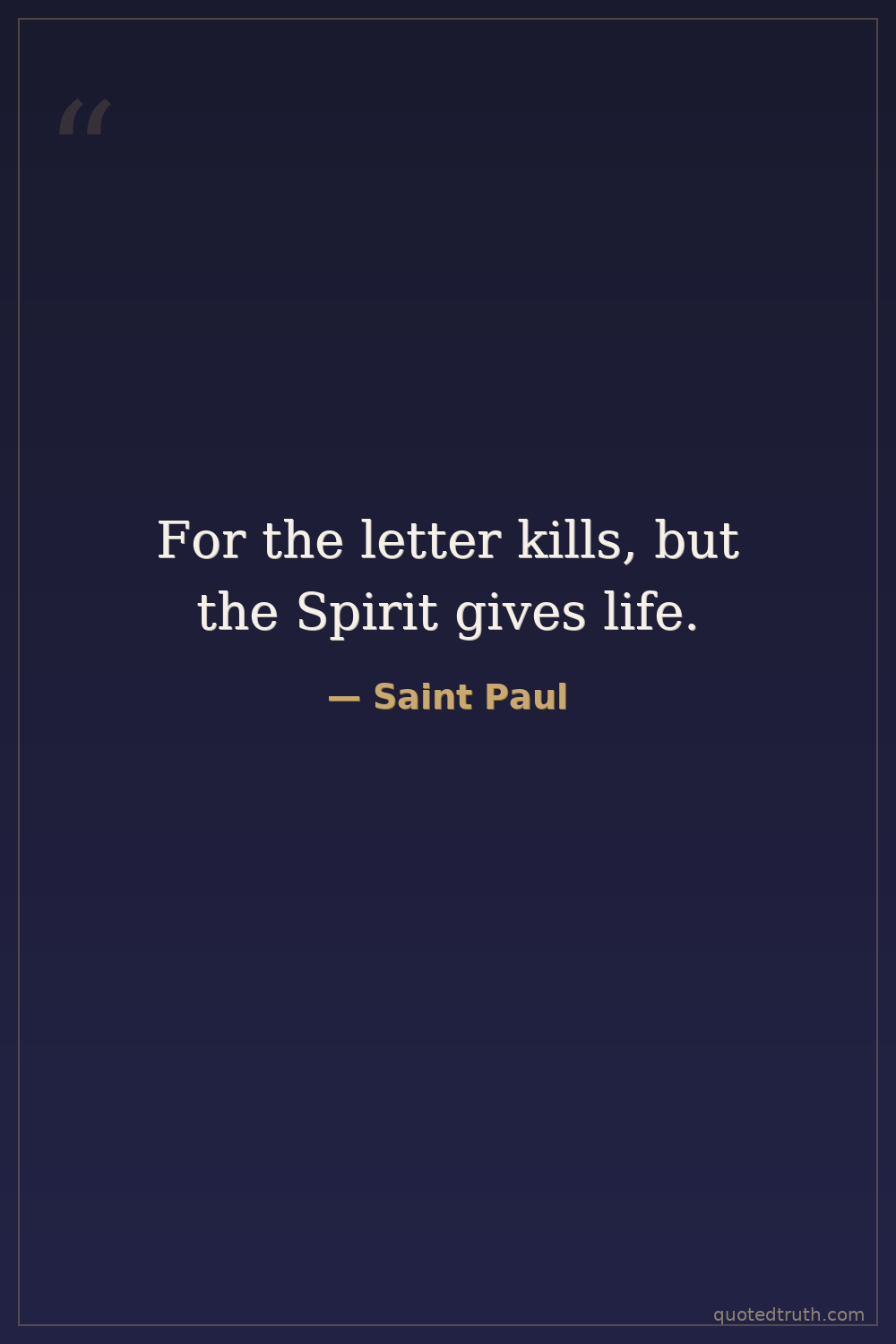 For the letter kills, but the Spirit gives life.