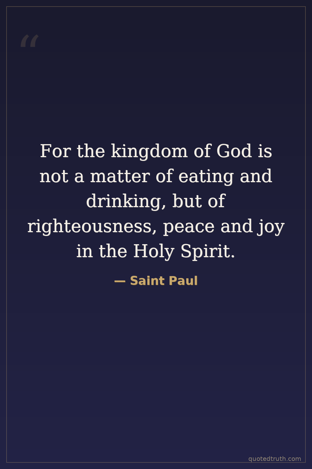 For the kingdom of God is not a matter of eating and drinking, but of righteousness, peace and joy in the Holy Spirit.
