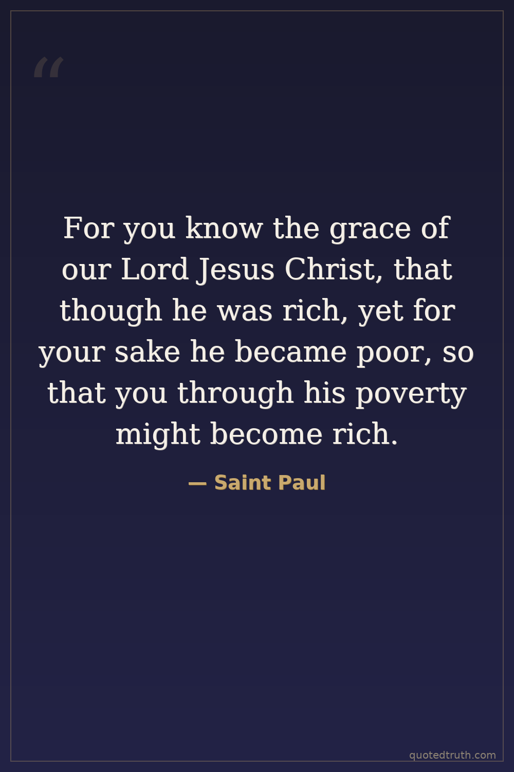 For you know the grace of our Lord Jesus Christ, that though he was rich, yet for your sake he became poor, so that you through his poverty might become rich.