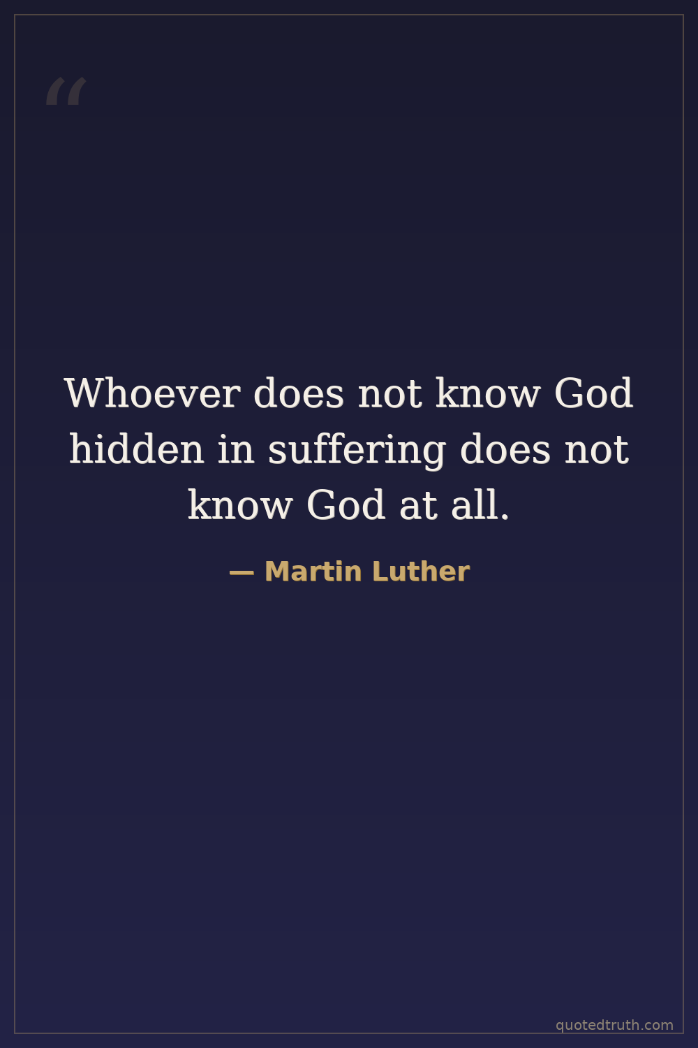 Whoever does not know God hidden in suffering does not know God at all.