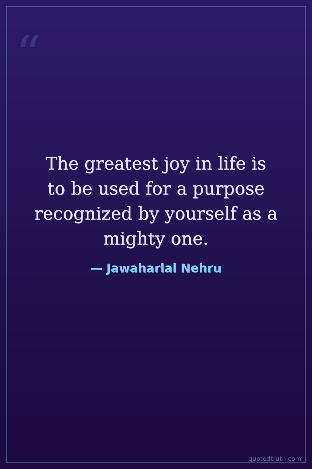 The greatest joy in life is to be used for a purpose recognized by yourself as a mighty one.