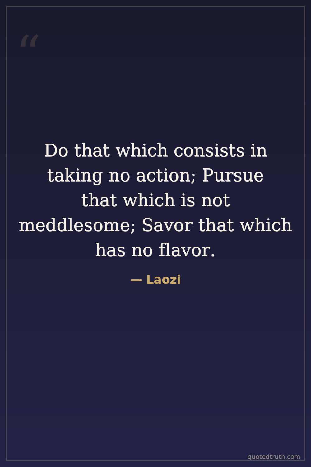 Do that which consists in taking no action; Pursue that which is not meddlesome; Savor that which has no flavor.