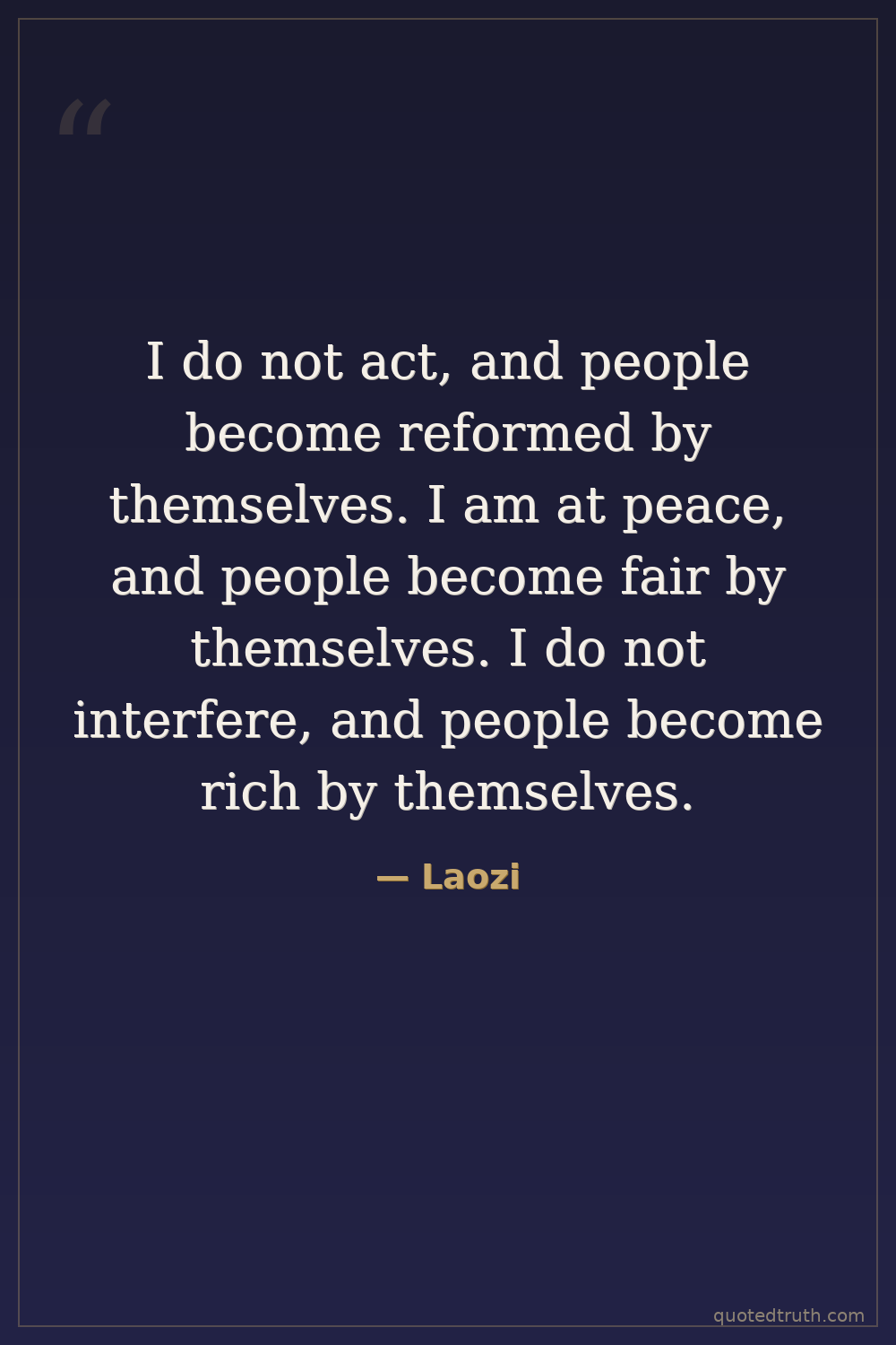 I do not act, and people become reformed by themselves. I am at peace, and people become fair by themselves. I do not interfere, and people become rich by themselves.