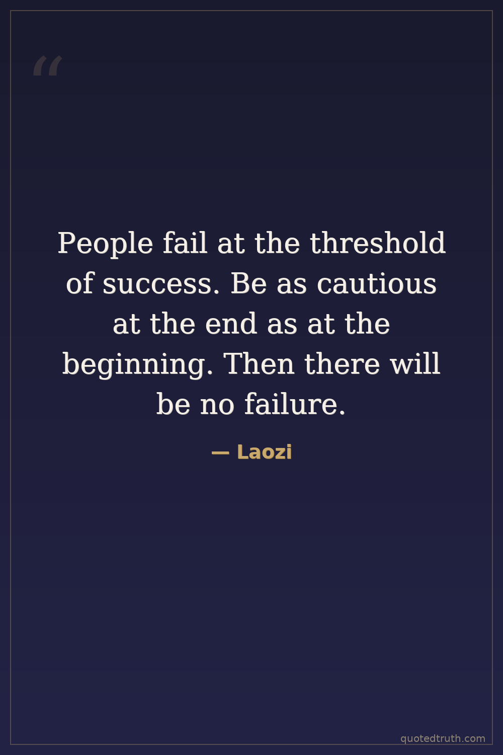 People fail at the threshold of success. Be as cautious at the end as at the beginning. Then there will be no failure.