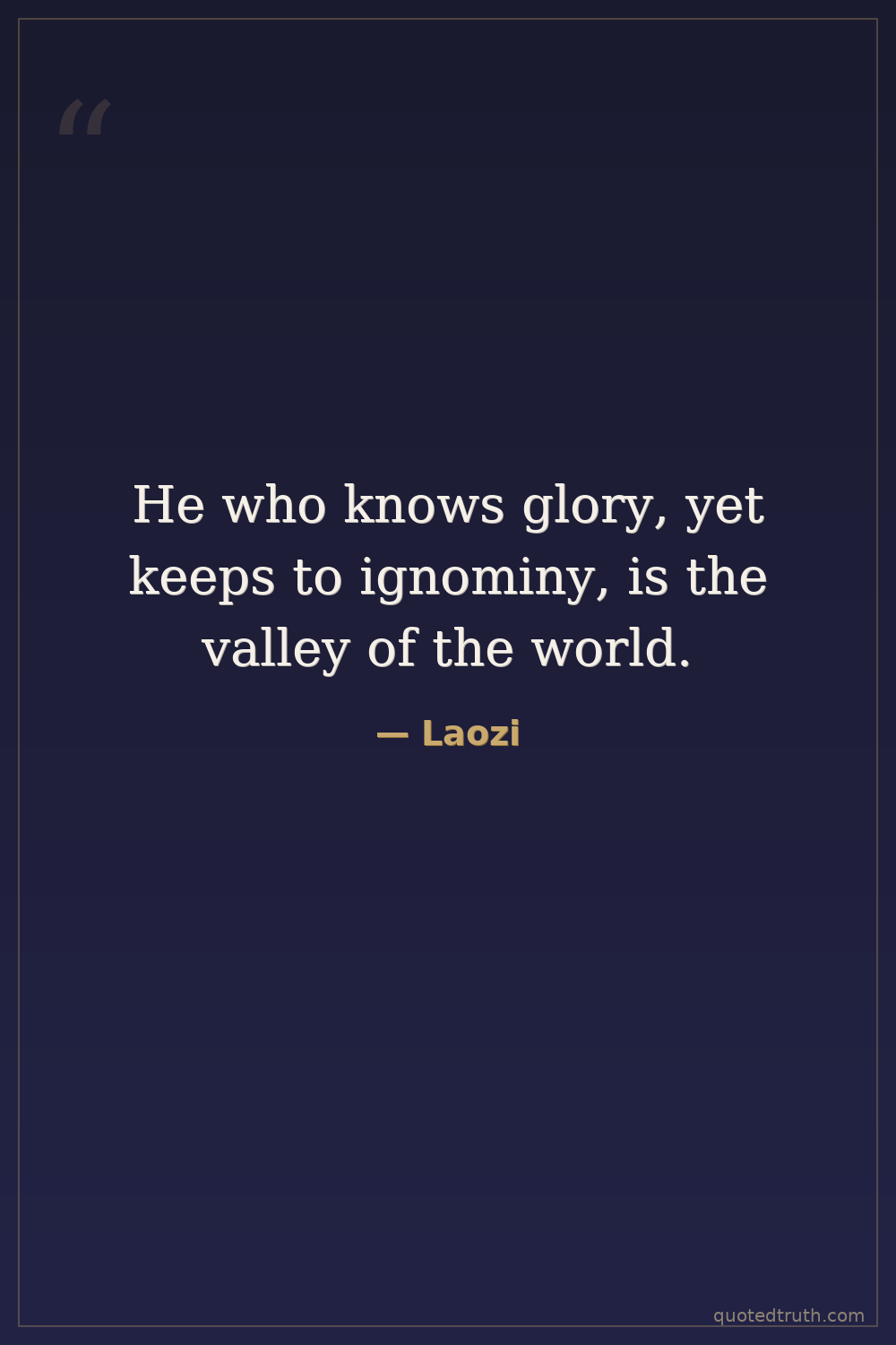 He who knows glory, yet keeps to ignominy, is the valley of the world.