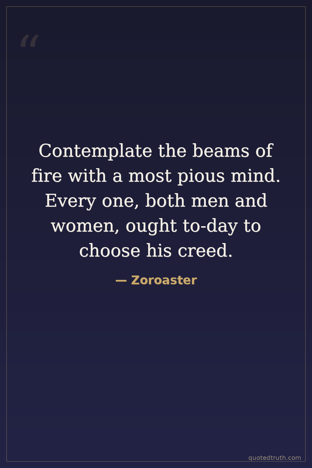 Contemplate the beams of fire with a most pious mind. Every one, both men and women, ought to-day to choose his creed.