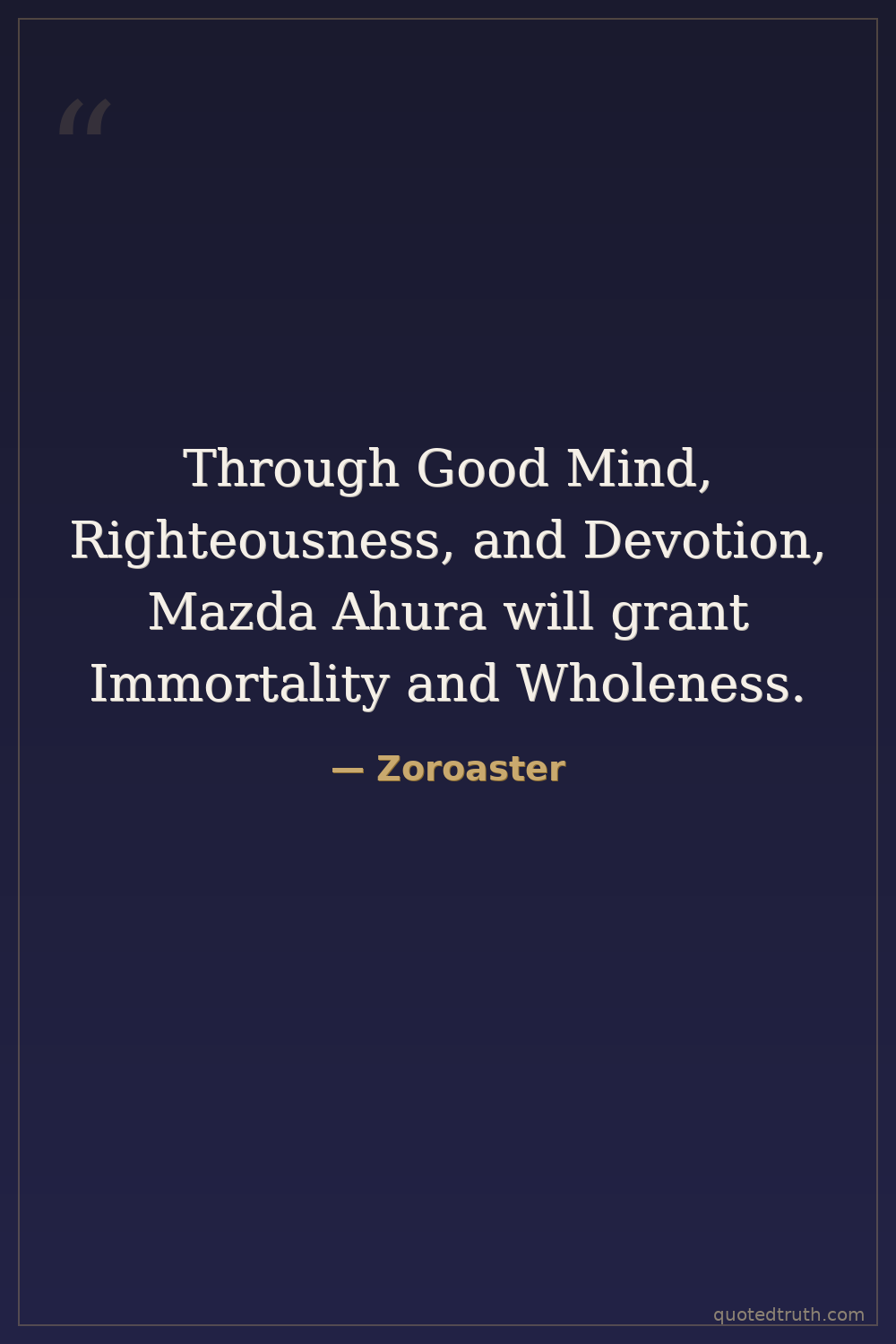 Through Good Mind, Righteousness, and Devotion, Mazda Ahura will grant Immortality and Wholeness.