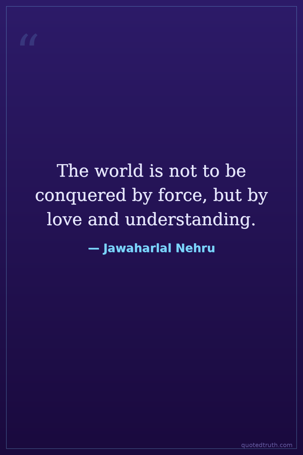 The world is not to be conquered by force, but by love and understanding.