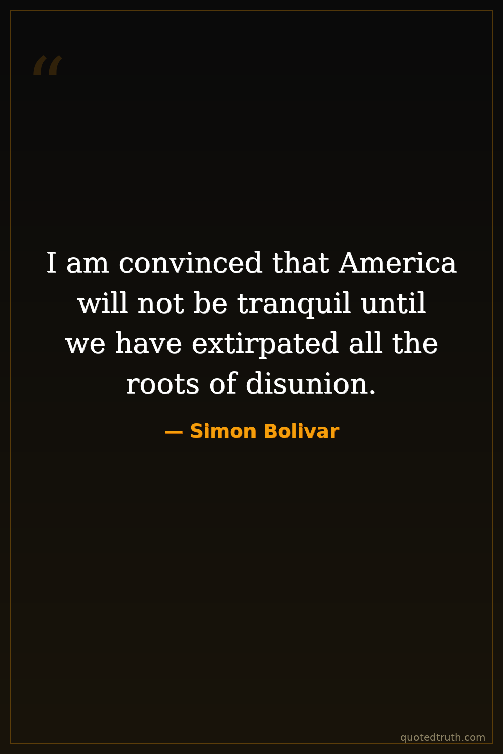 I am convinced that America will not be tranquil until we have extirpated all the roots of disunion.