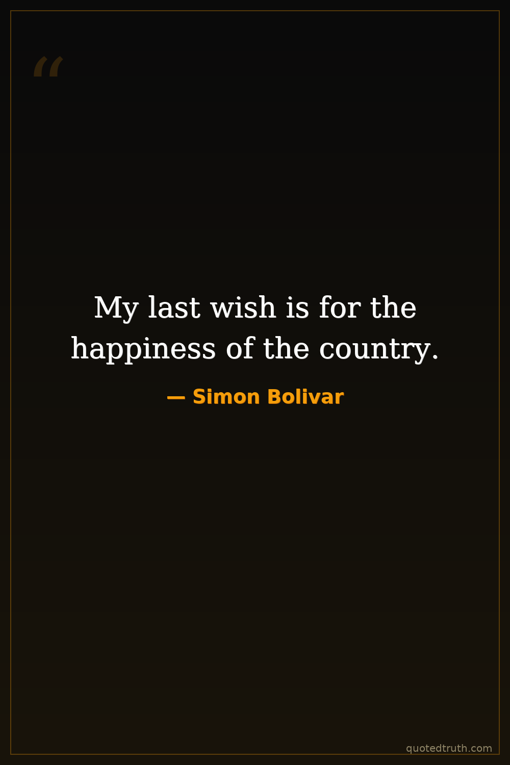 My last wish is for the happiness of the country.