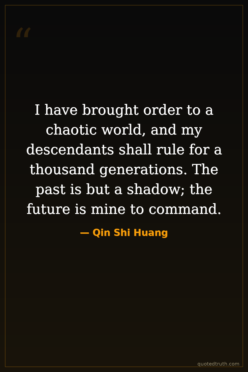 I have brought order to a chaotic world, and my descendants shall rule for a thousand generations. The past is but a shadow; the future is mine to command.
