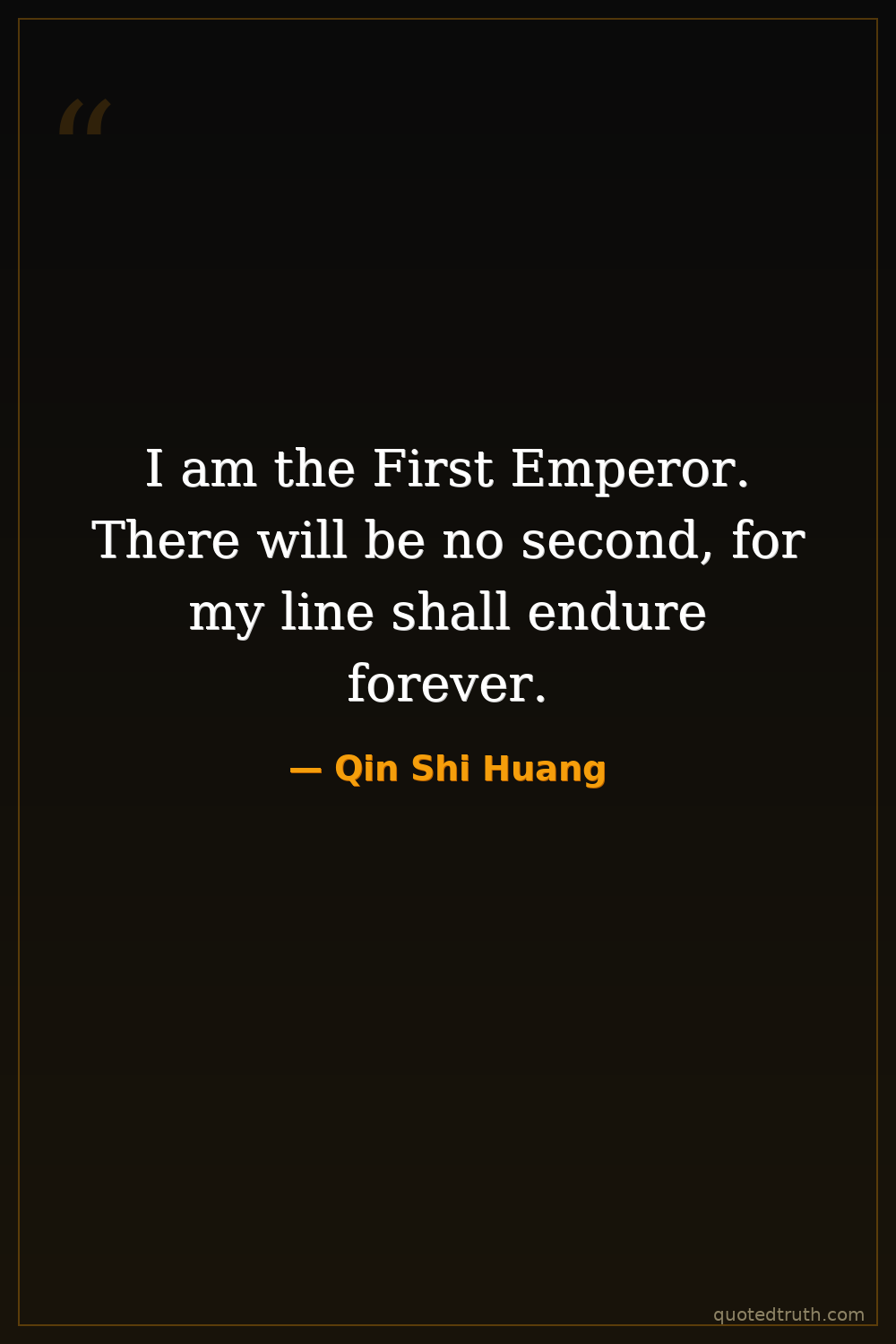 I am the First Emperor. There will be no second, for my line shall endure forever.