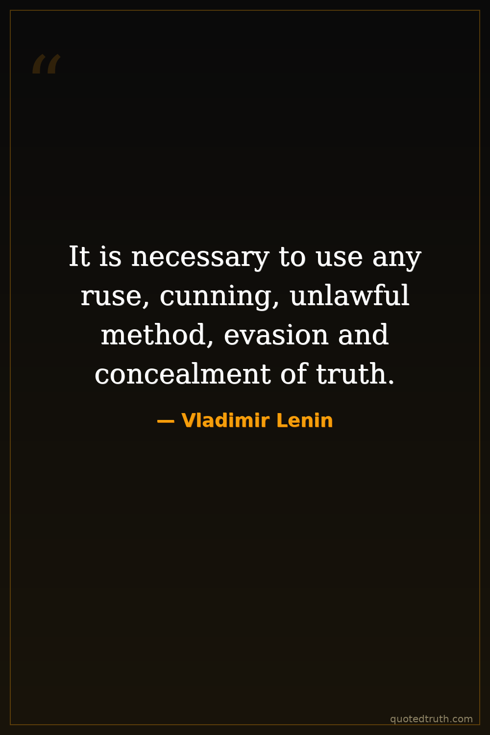 Shocking"We must be able to withstand everything, to agree to any and every sacrifice, and even — if need be — to resort to all sorts of strategems, manoeuvres and illegal methods, to evasion and concealment o…"